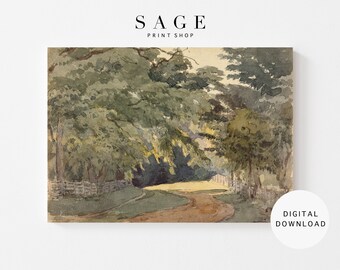 Tree Lined Lane Watercolor Painting Landscape Wall Art Etsy