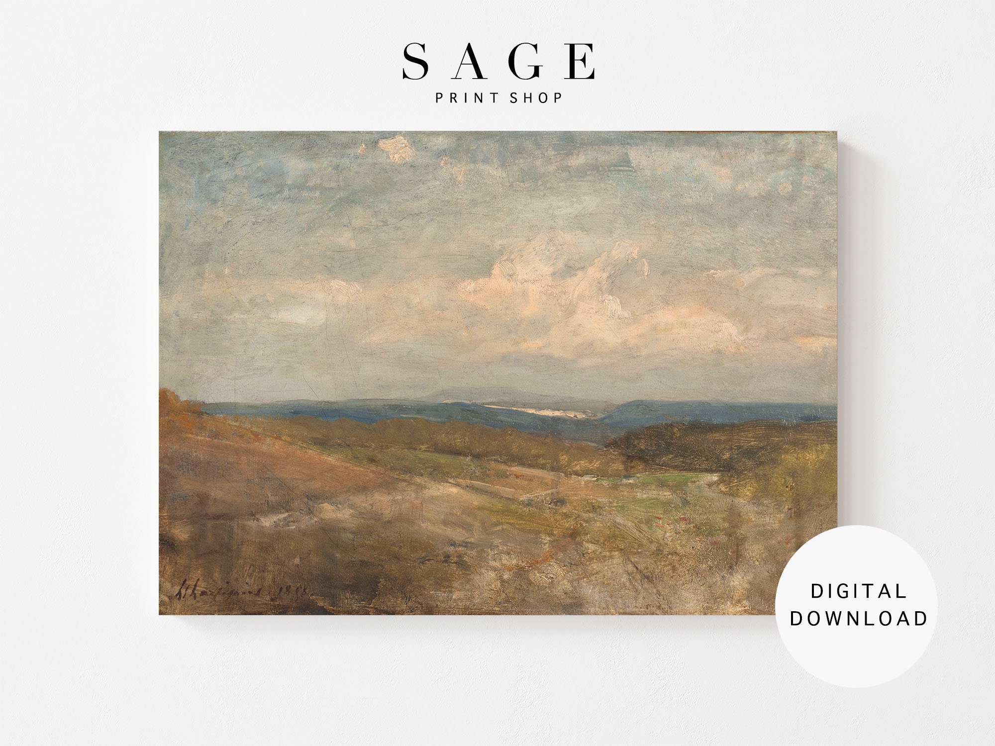 Moody Landscape Oil Painting Vintage Landscape Wall Art Etsy