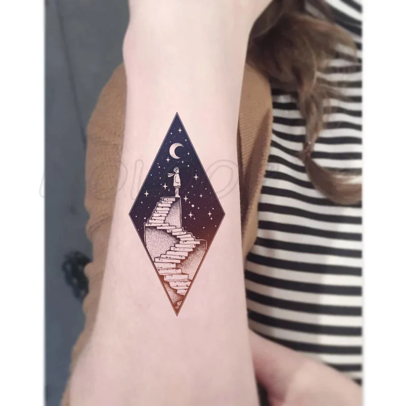 Waterproof Temporary Tattoo Stickers Starry Sky Stairs Tattoo Small Size Tatto Flash Tatoo Fake Tattoos For Man Girl Women Aliexpress Mobile